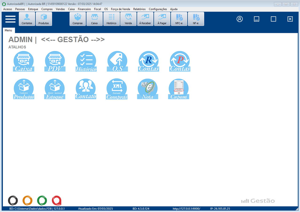 Com o sistema instalado em seu equipamento local, facilite a gestão de sua loja e tenha total controle de suas vendas, estoque e financeiro integrados, além do controle de documentos fiscais.